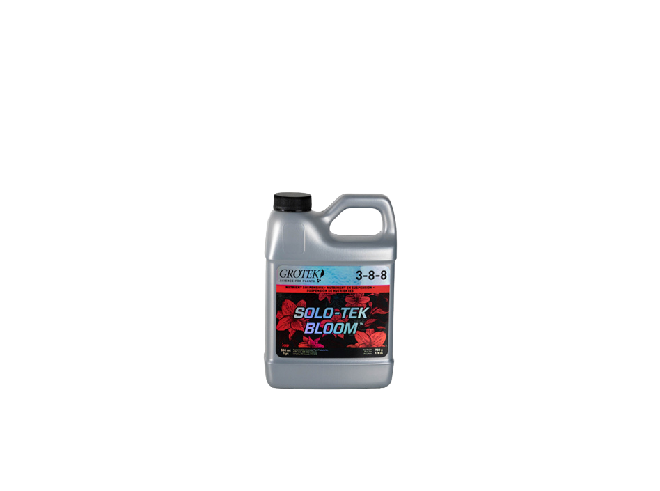Solo·Tek Bloom de Grotek es un abono base para floración que incluye los nutrientes esenciales necesarios para conseguir flores enromes con un aspecto inmejorable. Se comienza a utilizar una semana antes de que empiece la floración, para que la planta empiece a recibir señales de que la floración ya ha comenzado.