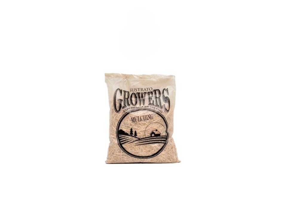 MODO DE USO: Aplicar sobre la superficie del sustrato, ya sea en suelo o en maceta, una capa de por lo menos 1cm de espesor. Regar luego para que el mulching se asiente y forme una capa homogénea en la superficie.