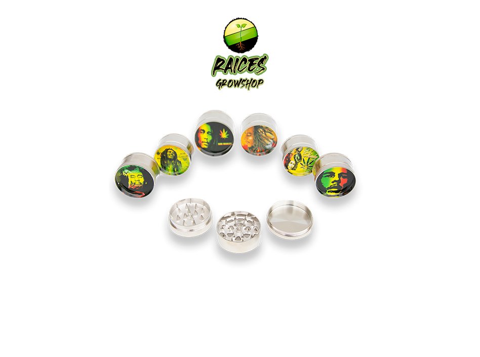 Picador tipo grinder metálico de 3 partes. Bob Marley